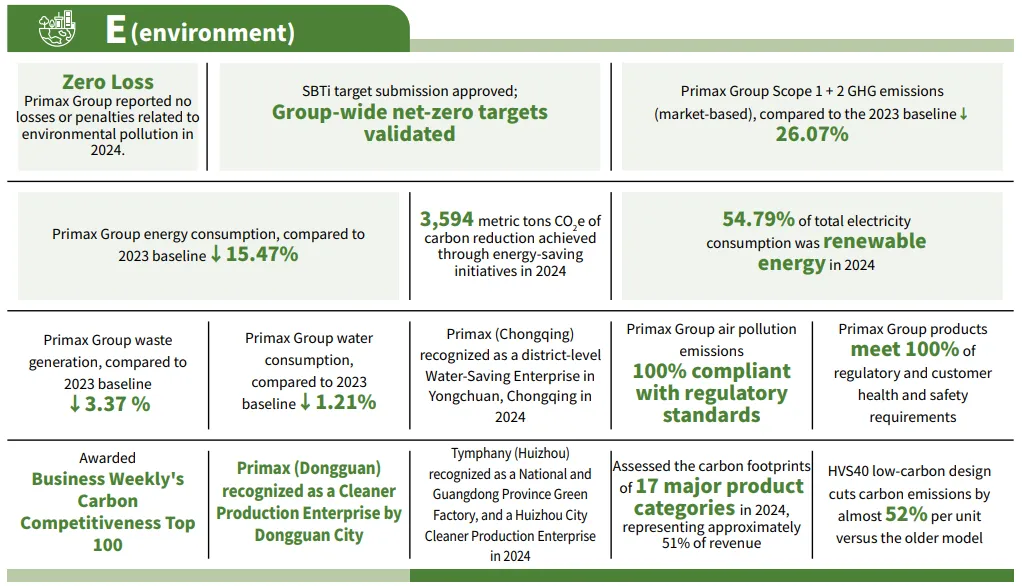 - Primax Group Total GHG emission reduced 26.07% compared to the 2023 baseline.