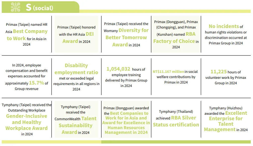 - Primax (Taipei) received the CommonWealth Talent Sustainability Award in 2024.