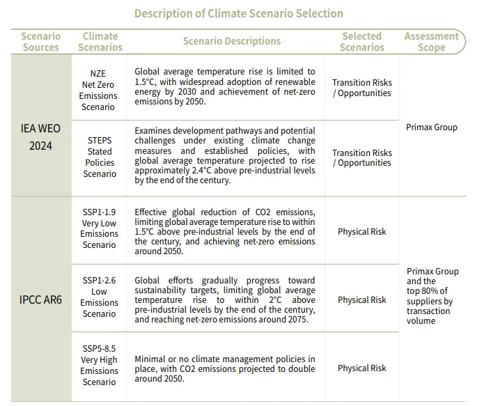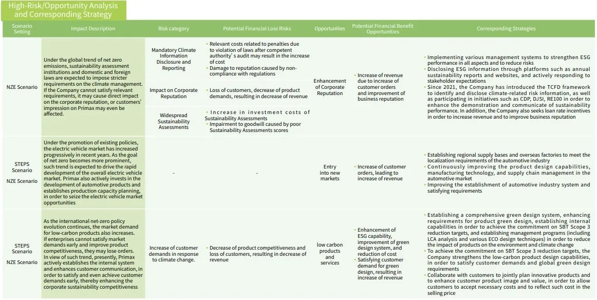 Please refer to "2024 TCFD Climate-related Financial Disclosures Report" for complete information on Primax's climate change risks. Please refer to the Chapter 4 Environmental Sustainability herein for climate change response management actions and performs.