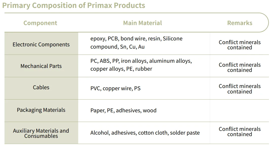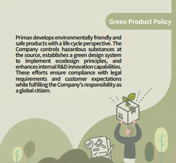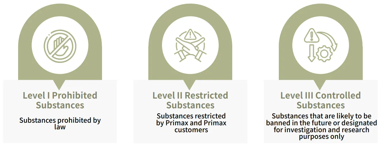 In line with applicable regional regulations and customer requirements, Primax Group has established the Primax Green Product Chemical Substance Restriction Specification. Through coordinated oversight by multiple departments, including Environmental Health and Safety, Production, Green Product, and Product R&D, the Group manages the use of chemicals at every stage of the manufacturing process.