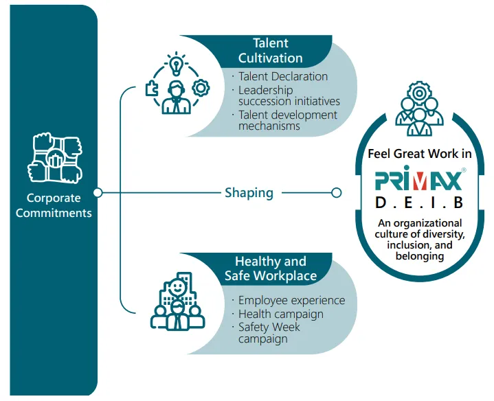 We promise to build an organizational culture of diversity, equality, inclusion,and a sense of belonging through the two main pillars of talent cultivation and healthy and safe workplace. In terms of talent cultivation, we achieve the goal of diversified development and inclusive growth through a talent declaration,leadership training, and a talent development mechanism. As for the health and safety workplace, we continuously optimize employee experience, increase health awareness and hold activities, and provide a family-friendly mechanism to provide an equal workplace where employees feel a sense of belonging.