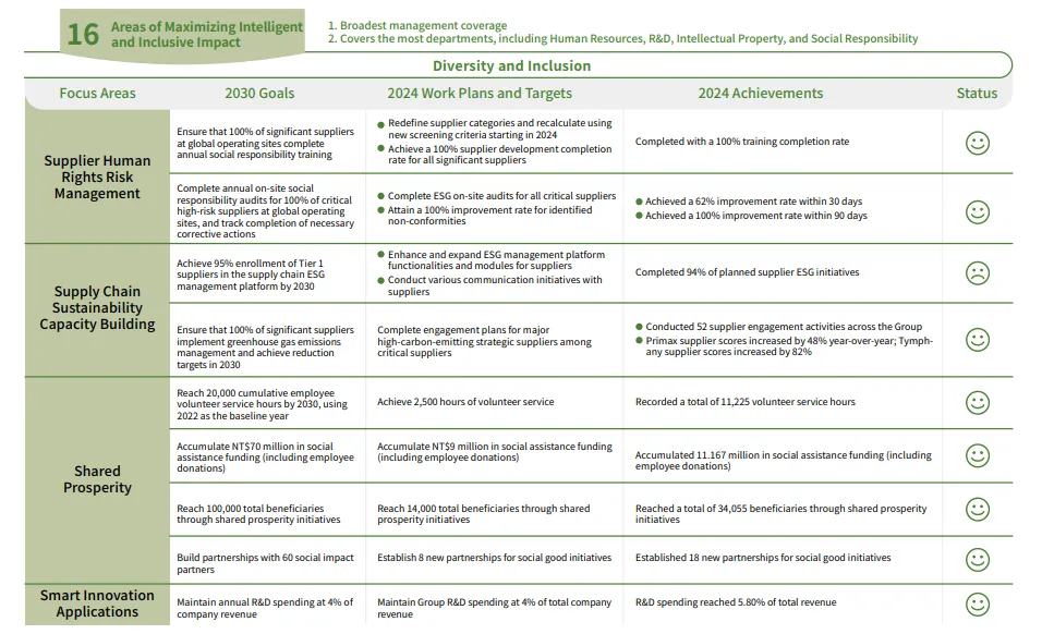 We are committed to fostering an organizational culture of diversity, equity, inclusion, and a sense of belonging through two main pillars: talent cultivation and creating a healthy and safe workplace. In terms of talent cultivation, we pursue the goals of diverse development and inclusive growth through our Talent Declaration, leadership succession initiatives, and talent development mechanisms. Regarding a healthy and safe workplace, we continuously enhance the employee experience, promote health awareness and activities, and provide family-friendly support systems to create an environment where all employees feel respected, equal, and connected.