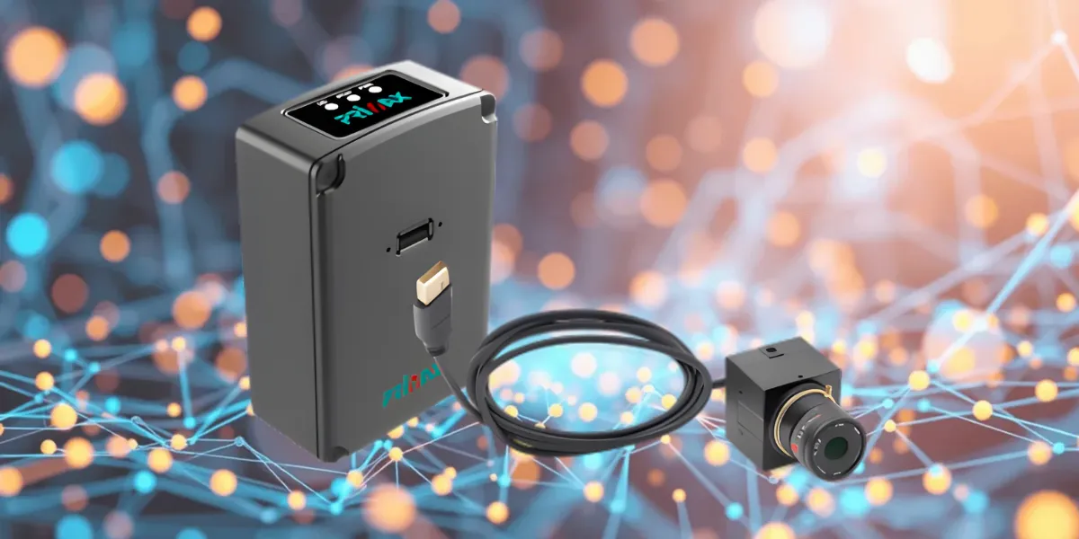 - Compact edge computing unit supporting external USB-A industrial cameras.