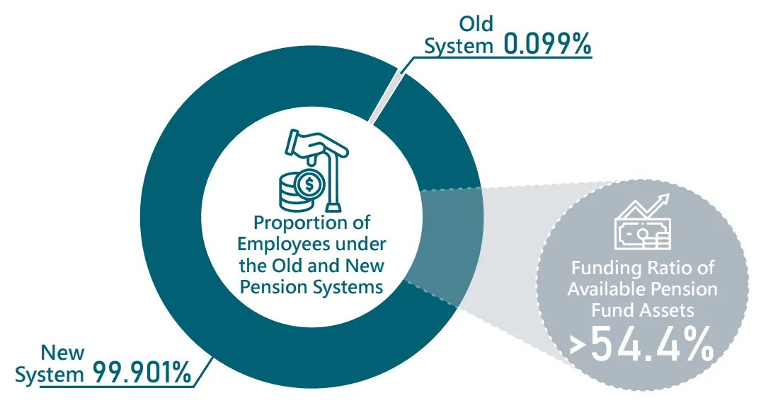 During the reporting period, approximately 0.099% of employees at Primax (Taipei) were enrolled in the old pension system, while about 99.901% were covered under the new system. The fund assets available to Primax exceeded the pension liabilities by 54.4%. In addition, the retirement policies for the Group's operations in Mainland China stipulate that male employees who reach the age of 60 and female employees who reach the age of 50, or those who have been certified by a hospital as unable to work, are eligible to apply for retirement. Upon retirement, salaries are suspended starting the month following the effective date. To express appreciation for employees' long-term contributions, Primax provides additional incentives on top of the statutory basic retirement insurance payments.