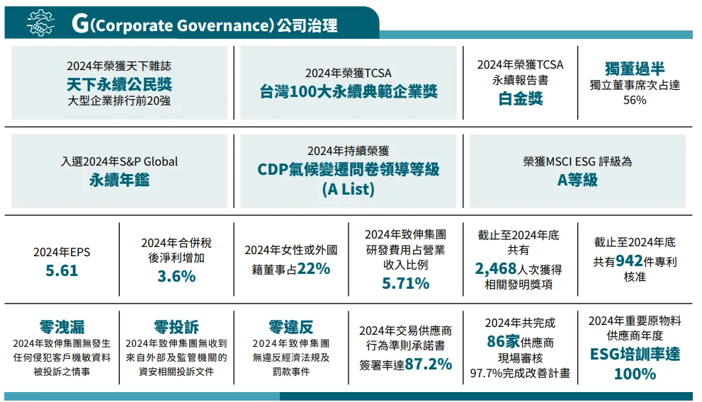 - 連續5年榮獲天下雜誌企業永續公民獎前20強