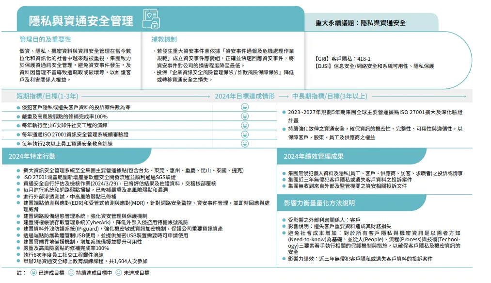 隱私與資通安全管理 【重大性議題:隱私與資通安全】